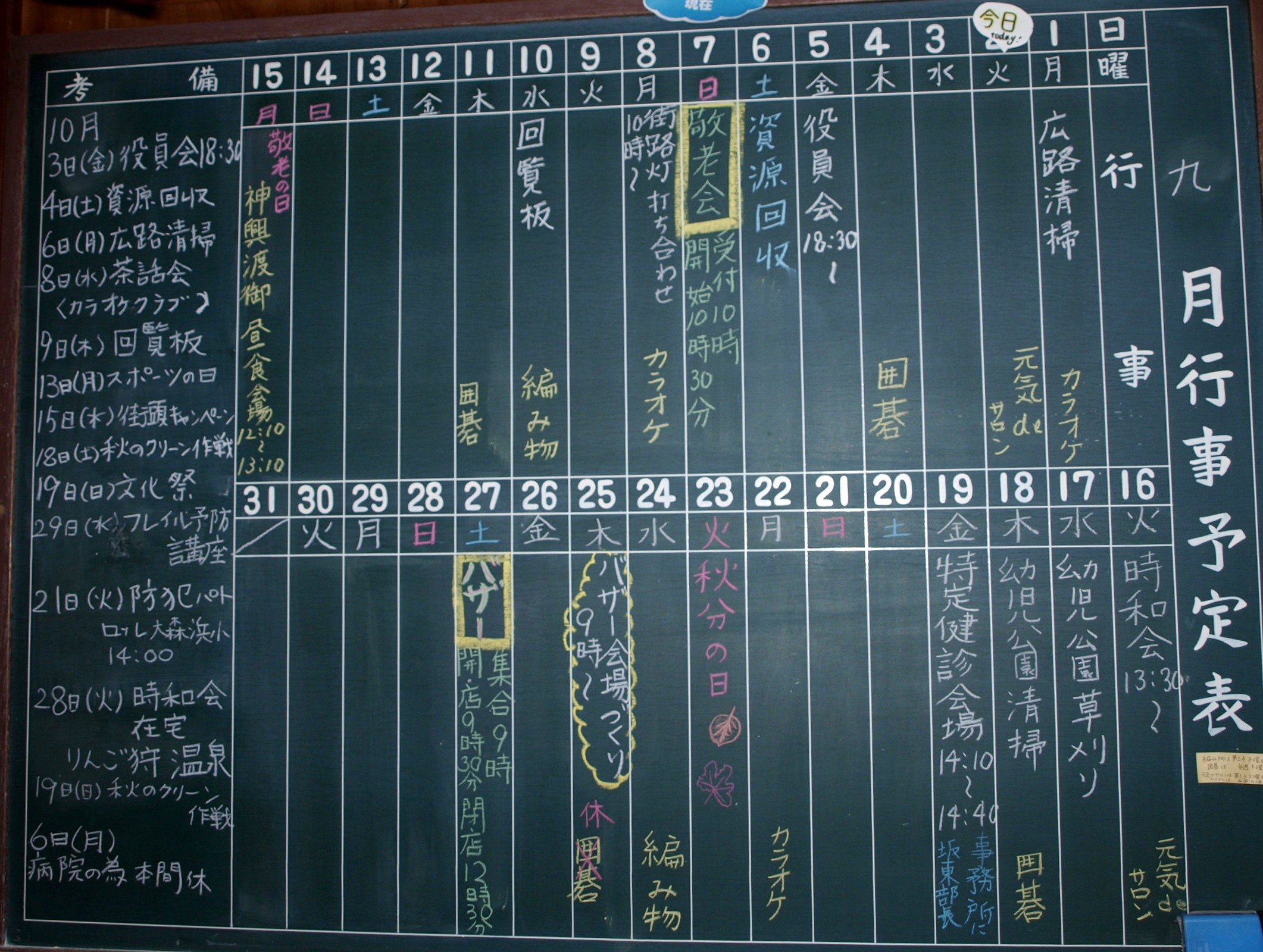 ■会館の行事黒板