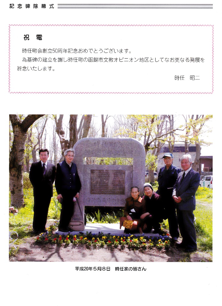 時任町会創立50周年記念碑除幕式時任家ごあいさつ
